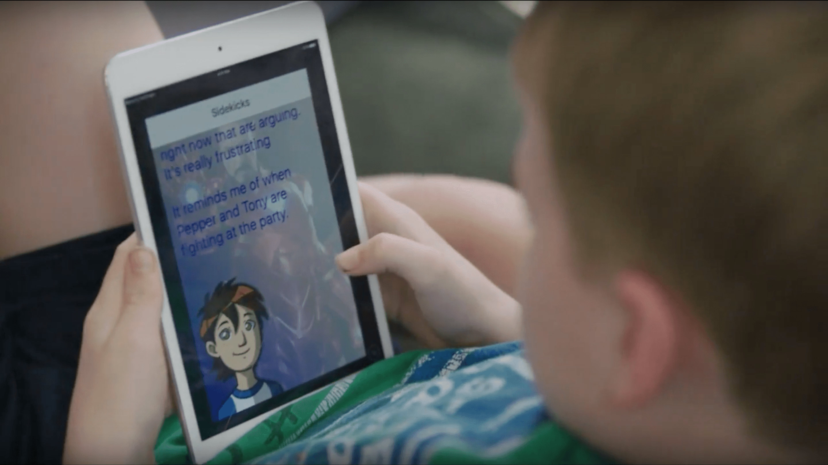 When I joined Sidekicks the company's product was a video and messaging system. On one side of a conversation was a child (the "hero") talking to an animated avatar (their "sidekick") through a mobile app. On the other side was their parent or a therapist talking back through a desktop web app. The adult could hear the child's voice and type replies for the sidekick to say, or send videos from our curated library of clips from movies and television.